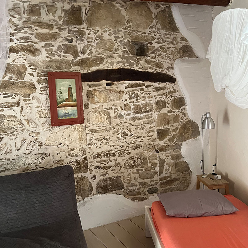 Was sie verbindet, ist ihre ursprüngliche Gestaltung, die sich bewusst an der historischen Bauweise orientiert: dicke Steinwände, natürliche Materialien, durchdachte Raumaufteilung. Was sie unterscheidet, ist ihre Stimmung: warmes Rot im Kokkinos, ruhiges Blau im Blé.