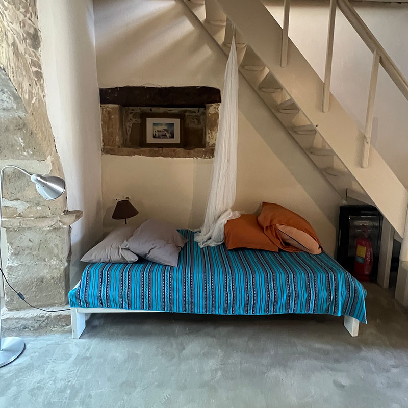 Ein weiteres Bett im Wohnbereich bietet zusätzliche Flexibilität für Familien oder kleine Gruppen – wohnlich, offen und gemütlich.