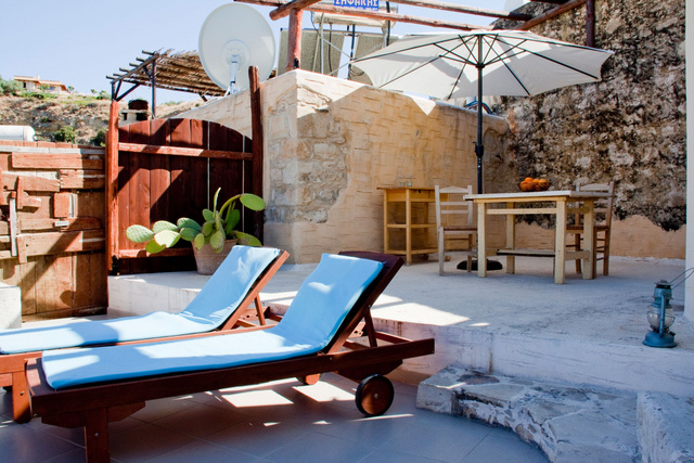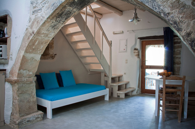 Ouranós Blé ist eine 60 m² große, liebevoll gestaltete Wohnung über zwei Ebenen, die Platz für drei bis vier Personen bietet und sich ideal für Paare, Familien oder Freunde eignet, die einen entspannten Urlaub in ursprünglicher kretischer Atmosphäre verbringen möchten.