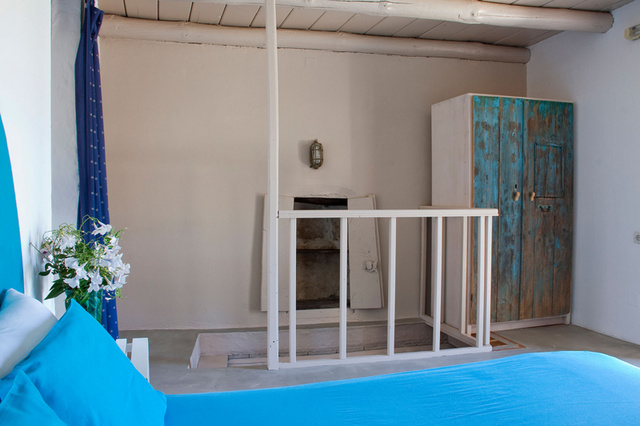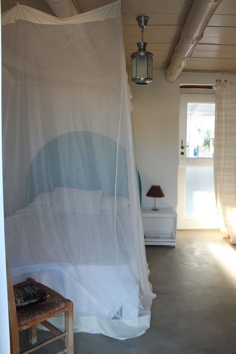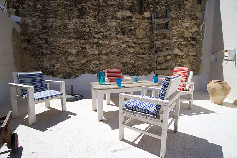 In Blé dominiert ein ruhiger, himmelblauer Farbton, der die Verbindung zwischen Haus, Himmel und kretischem Licht aufnimmt und dem Apartment eine lebhafte, zugleich beruhigende Stimmung verleiht.