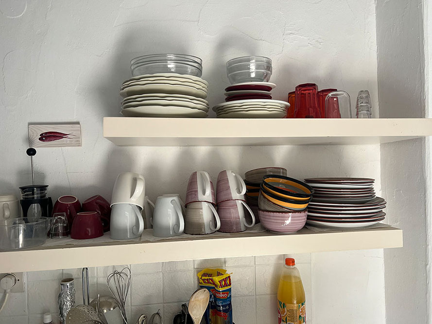 Hier kochen Sie gemeinsam und fast im Freien, genießen den ersten Kaffee des Tages oder bereiten ein spätes Abendessen vor – wenn Sie nicht in einer der wunderbaren Tavernen Pitsidias einkehren.