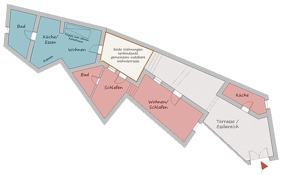 Auch unser Farbkonzept erzählt Geschichten: Im Kokkinos dominiert ein warmes, einladendes Rot, während im Blé kühle Blautöne das Ambiente prägen. Jede Wohnung wird so zu einem einzigartigen Rückzugsort, der Gemütlichkeit, Harmonie und mediterranes Lebensgefühl verbindet.